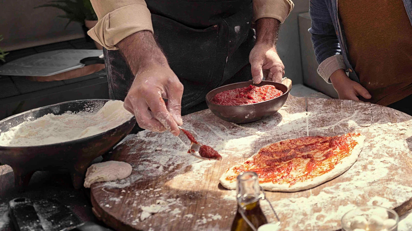 Infilare una pizza in un forno tradizionale comporta una significativa diminuzione della temperatura della pietra. Ciò significa che il forno deve nuovamente riscaldarla. ETNA Rotante di Witt è dotato di un bruciatore potenziato che riscalda continuamente la pietra in rotazione dalla parte inferiore e la mantiene pronta per l'uso.